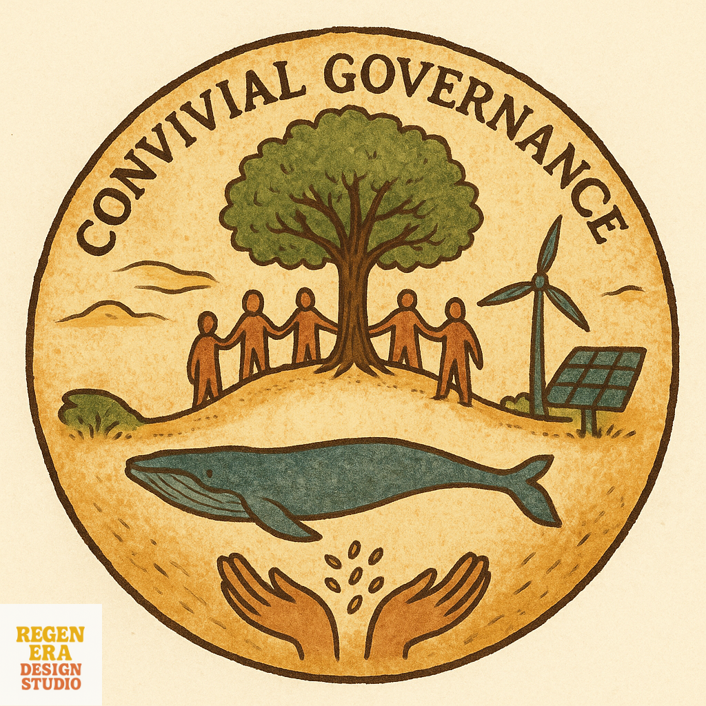 Convivial governance names the shift from bureaucracy-for-its-own-sake to structures that serve life: clear roles, lean paperwork, transparent accountability, and decisions made as close to place as possible. It pairs with foundational economics, prioritising the everyday systems that actually hold a society together (care, food, energy, housing, local transport), so budgets and procurement nourish common goods rather than extract them. This is care governance and common-sense governance: organised, yes, but rewarded for outcomes in soil health, community wellbeing, cultural vitality, and fair livelihoods, not for shuffling paper. Across the world, good leaders on left and right, and philosophers at the fringes, are calling for fairer, justice-based systems; they sense what many communities already know: when public institutions are tethered to corporate interests, the social fabric is thinning. Realignment is due, toward the public interest, local economies and communities, and nature as a living creditor. Everyone has a role: councils and agencies, co-ops and farms, schools and households. The work can be peaceful and beauty-led, seasonal rituals, shared meals, dignified spaces, and practical tools that invite participation so governance becomes something people do with each other, not something done to them.